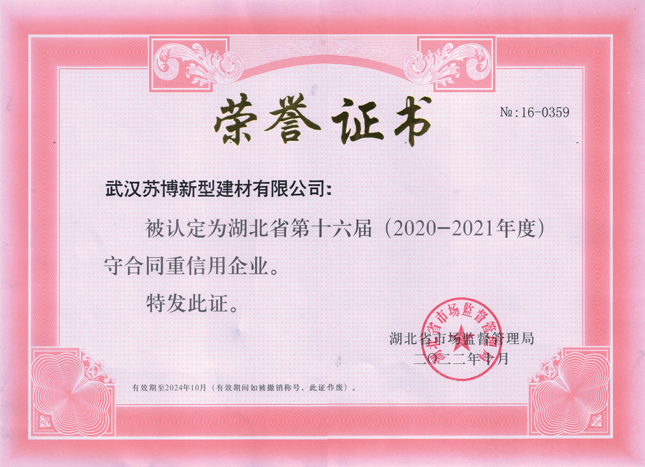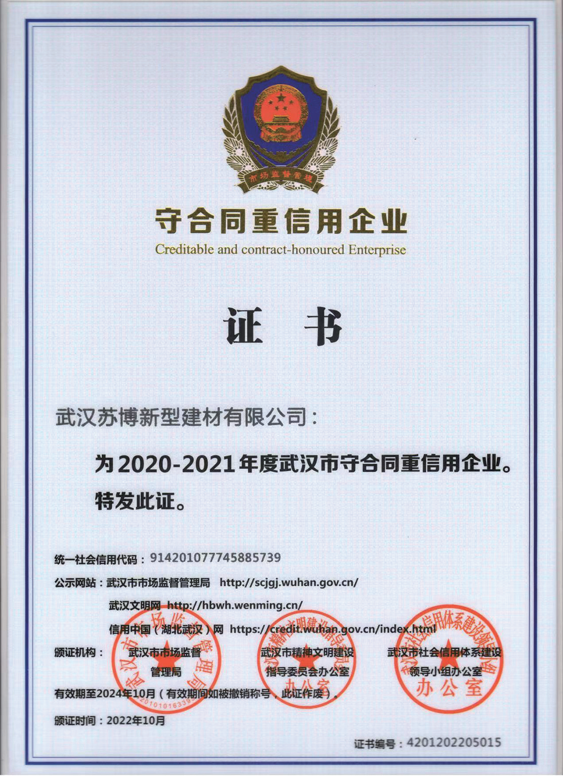 先后获评湖北省及武汉市“守合同重信用”企业,通过了质量管理体系认证和职业健康安全管理体系认证。